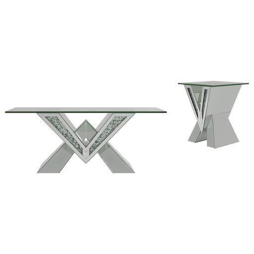 Taffeta V-shaped Sofa Table with Glass Top Silver